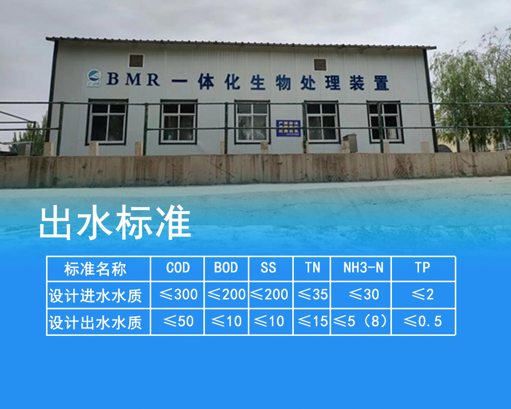 處理規(guī)模:100t/d,采用工藝:BMR,進(jìn)水水質(zhì):生活污水,出水水質(zhì):國(guó)家一級(jí)A標(biāo)準(zhǔn)