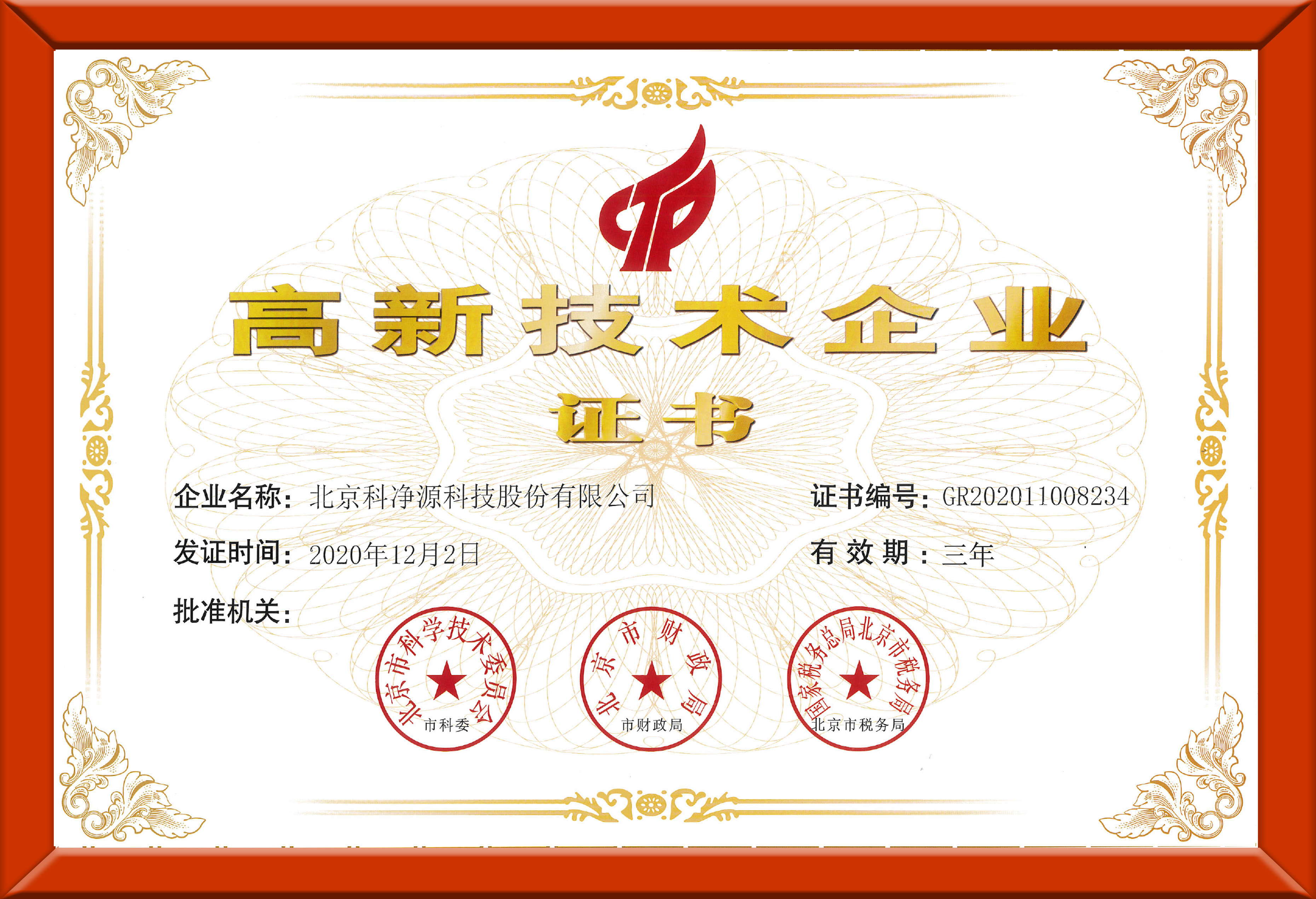 高新技術(shù)企業(yè)技術(shù)證書