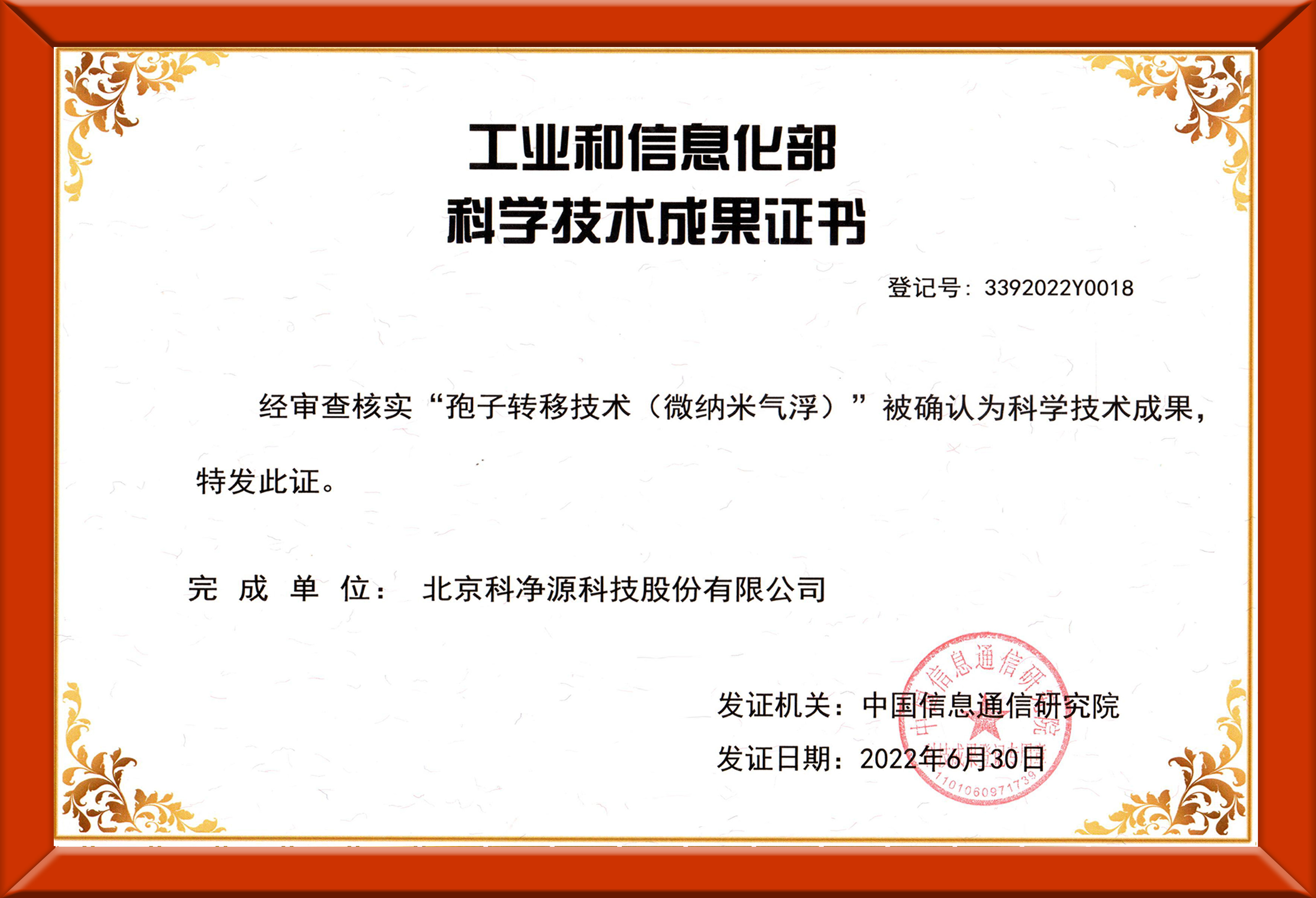 孢子科學(xué)技術(shù)成果證書
