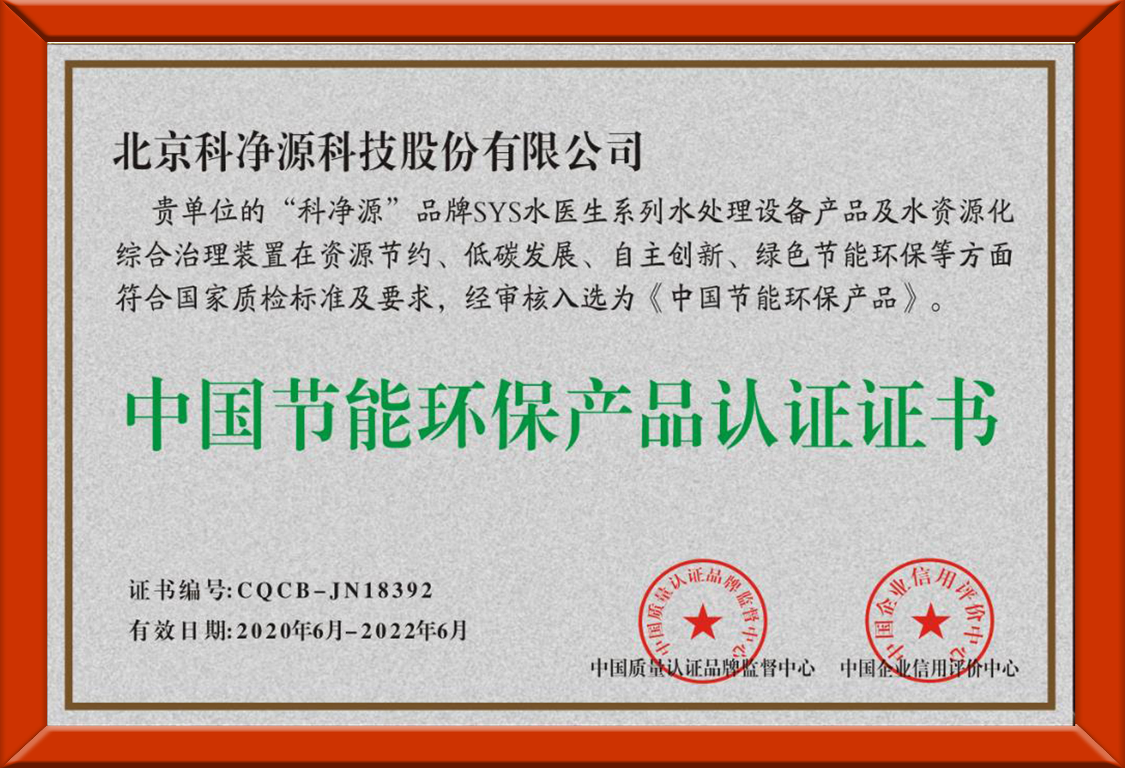 中國(guó)節(jié)能環(huán)保認(rèn)證證書