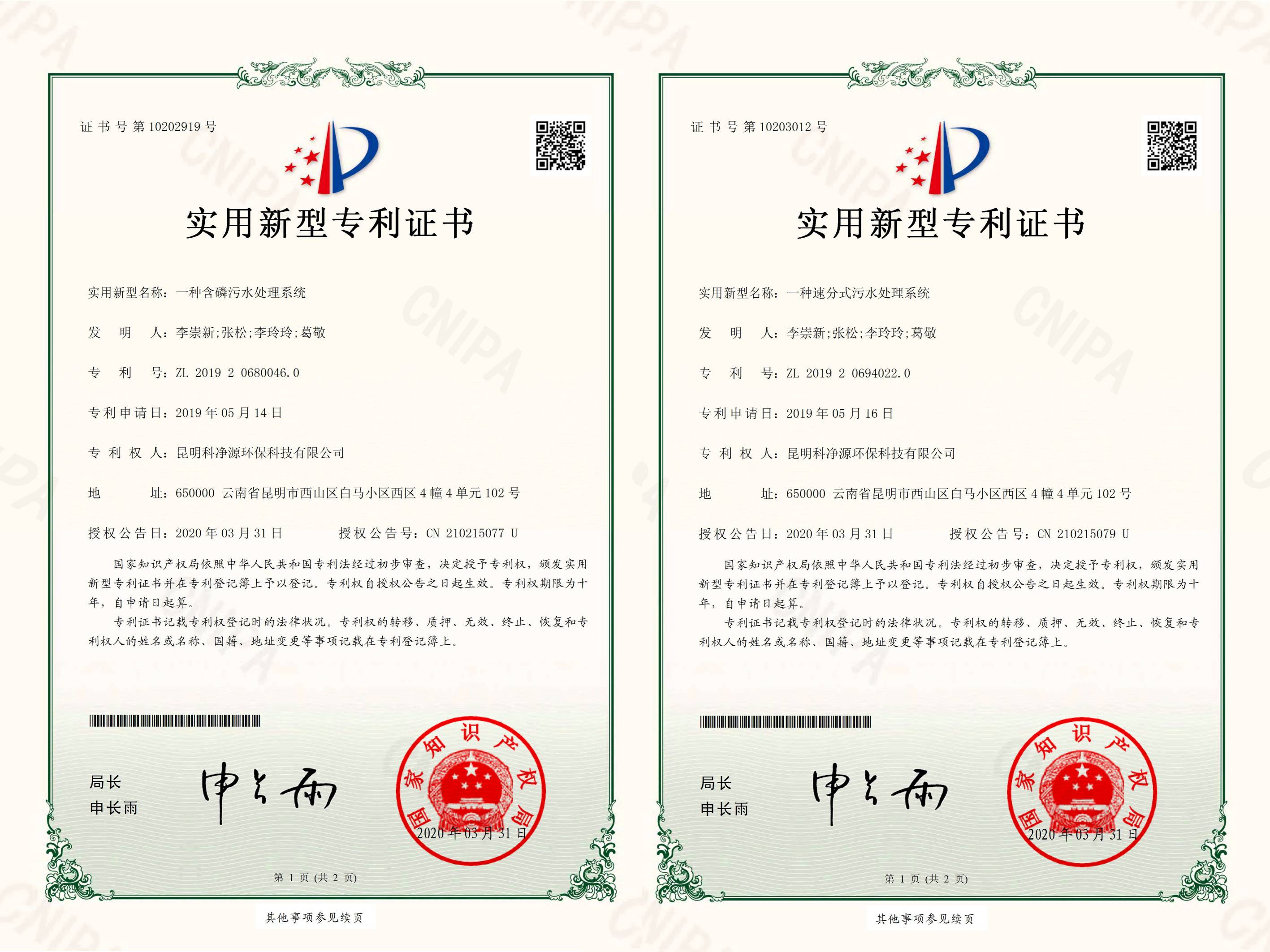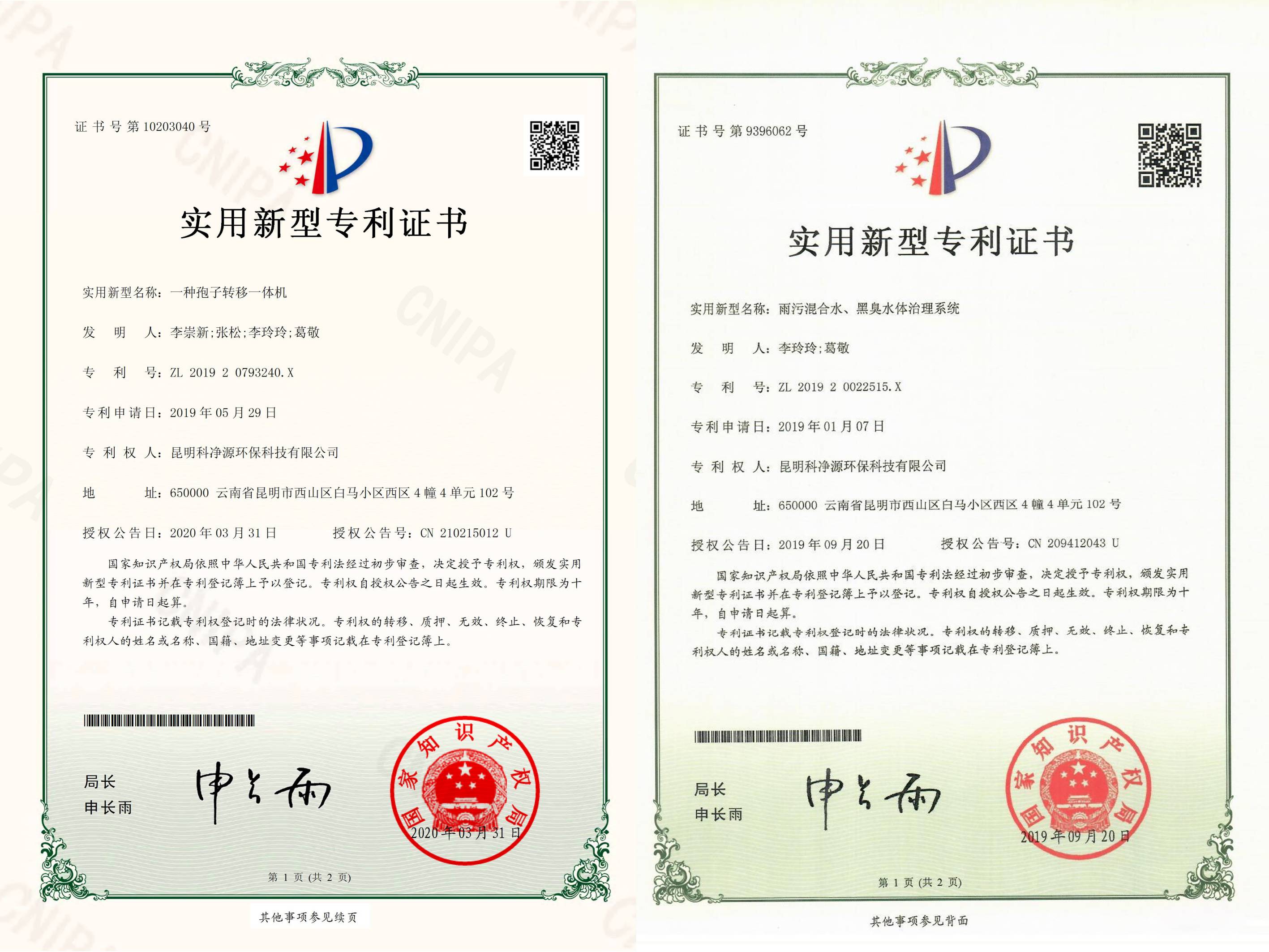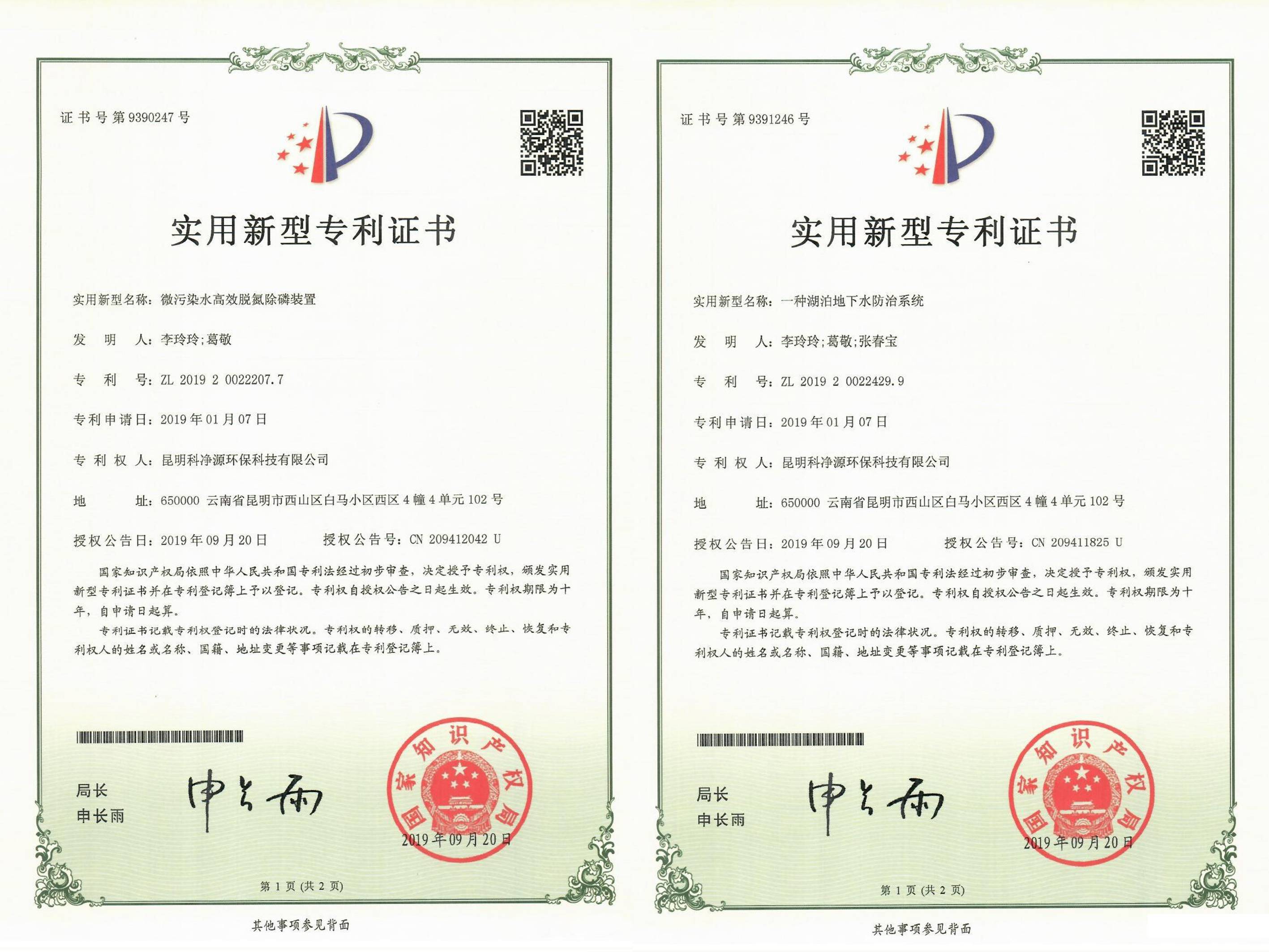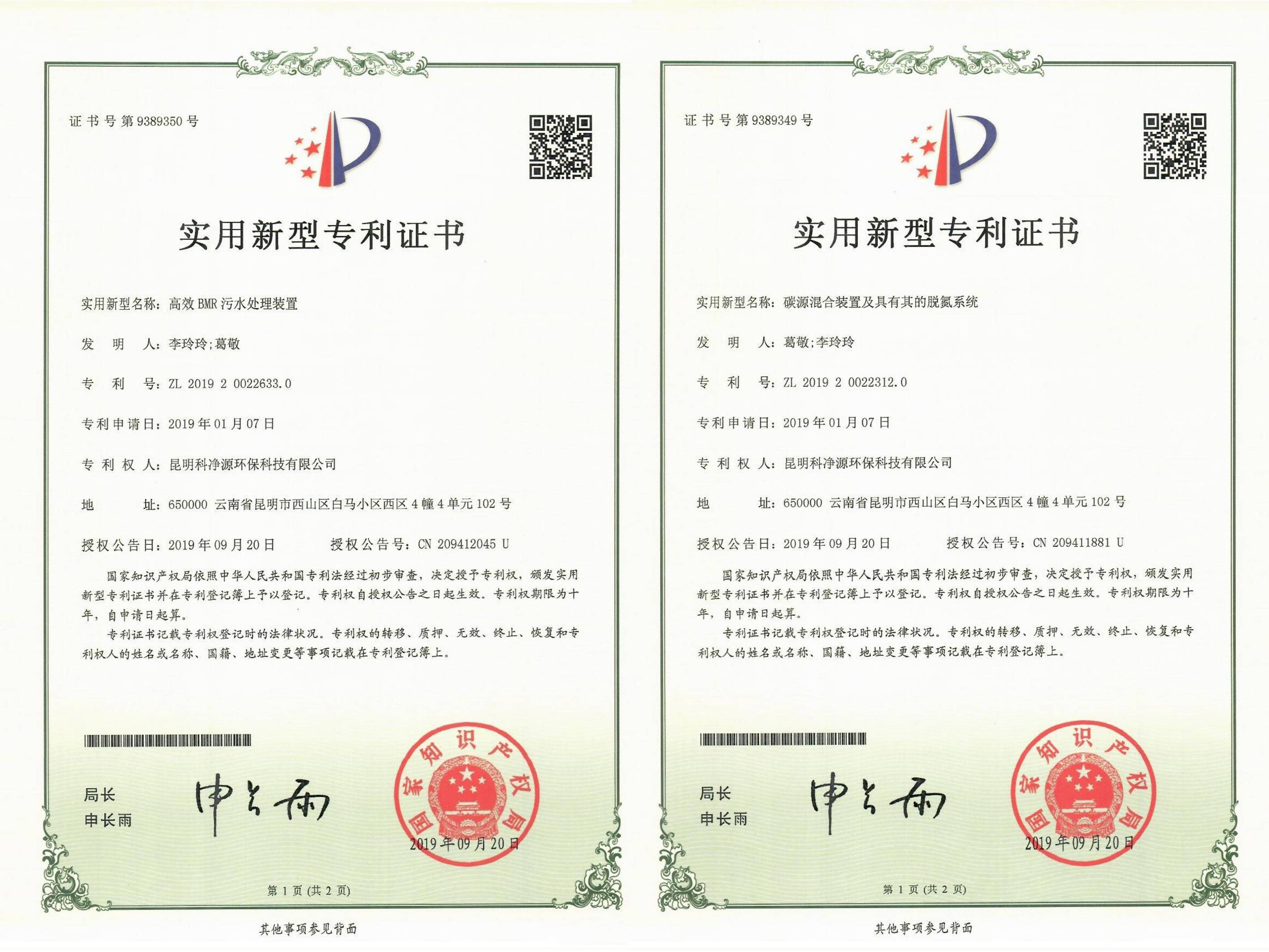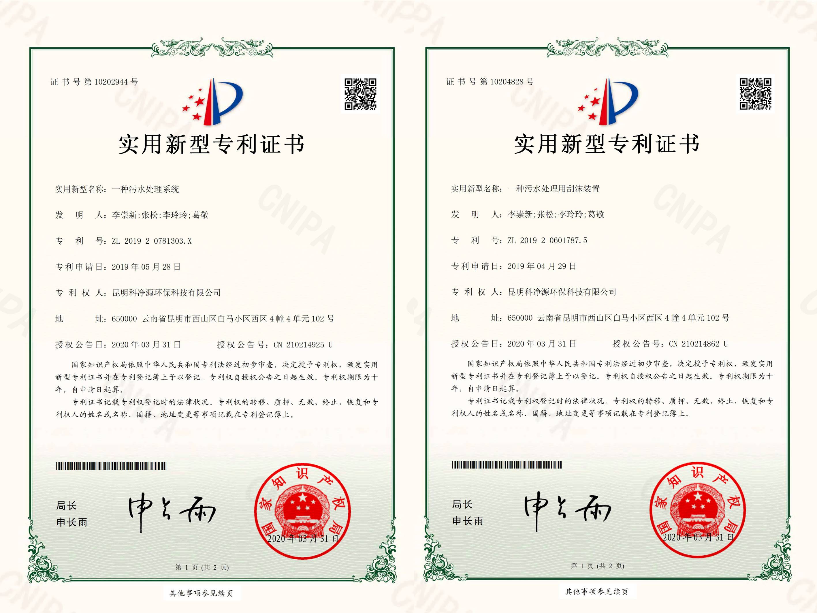 實(shí)用新型專利證書